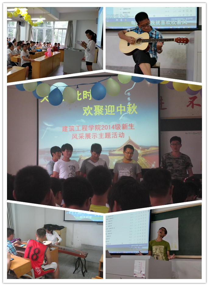 为使刚进校的新生在校度过一个愉快、充实、难忘、有意义的中秋佳节,9月8日下午三时,建筑工程学院“天涯共此时,欢聚迎中秋”新生风采展示主题活动在4教101、102、103、104、108举行。学院党委副书记李烨、团委副书记刘海涛、2014级新生辅导员韦学玉、赵恒芳和全体新生参加此次活动。