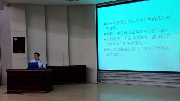 接着,计算机与信息学院基础教学部副主任张义以《学科竞赛与实践能力培养》为题,向同学们详细介绍了学院近年来组织学生参加专业学科竞赛的基本情况,并播放了一段极为精彩的比赛视频,充分展示了学院在此项工作上取得的成绩以及参赛同学的聪明才智和个性风采,极大地鼓舞了新生的学习热情。