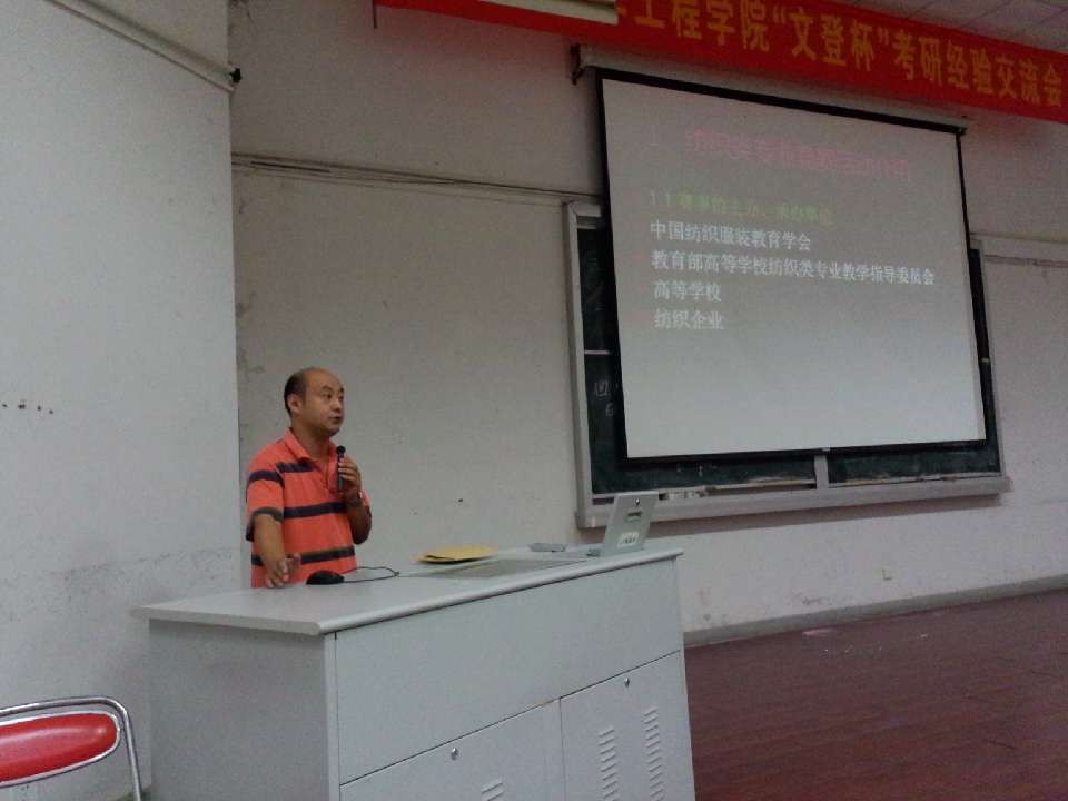 9月25日晚,纺织服装学院纺织工程系教师王旭、服装系教师王竹君在2教报告厅为2014级全体新生做了题为“学科竞赛和创新能力培养”的专题报告,报告由院党委副书记孙宏义主持。