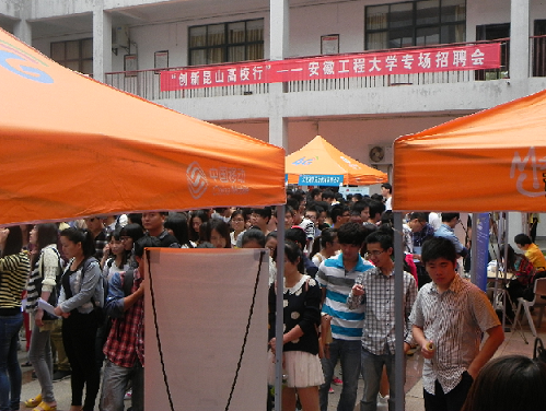 “创新昆山高校行”专场招聘会的成功举行是我校积极构建“政府-企业-高校”三位一体就业市场服务体系的重要成果之一。借助“创新昆山高校行”等多个良好平台,校就业指导中心将继续发挥自身职能,积极开拓市场,举办优质的校园招聘活动,为2015届毕业生提供更多高层次的就业机会,进一步促进毕业生充分和更高质量的就业。