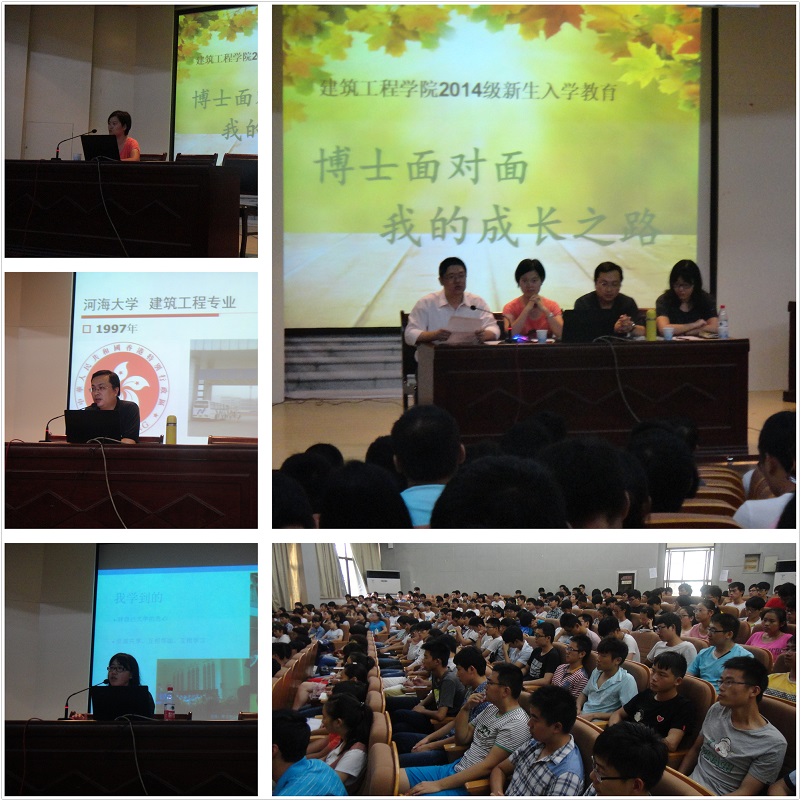 “地震来了,不要慌,快避震”,这是建筑工程学院新生安全消防演练的现场实况;“劝君惜取少年时”、“仰望星空,脚踏实地”、“做一个对社会有用的人”,这是“我的成长之路——博士与新生面对面”活动中三位博士与同学们分享的感悟;“大学是一个崭新的起点”、“激发自主学习的动力是兴趣”、“用真诚传递中国魅力”,这是“奋斗的青春最美丽——学长学姐伴我行”优秀学生报告会上学生代表的发言。