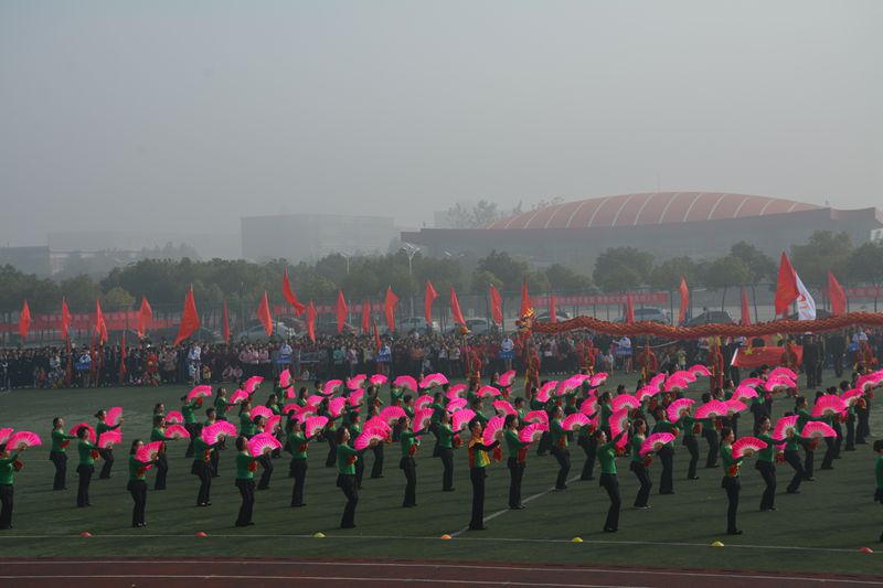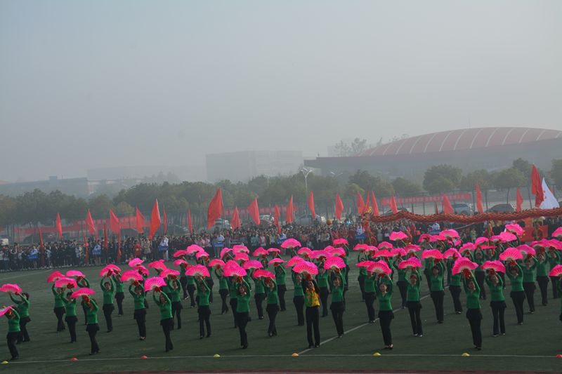 第三十三届校运动会开幕式上由110名老中青三代教职工和青年学生组成的健身舞表演队,在《中华全家福》的优美乐曲伴奏下尽展三尺讲台下的温婉、动感和时尚。他们精彩完美、充满正能量的表演,赢得了全场师生的热烈掌声和欢呼声。