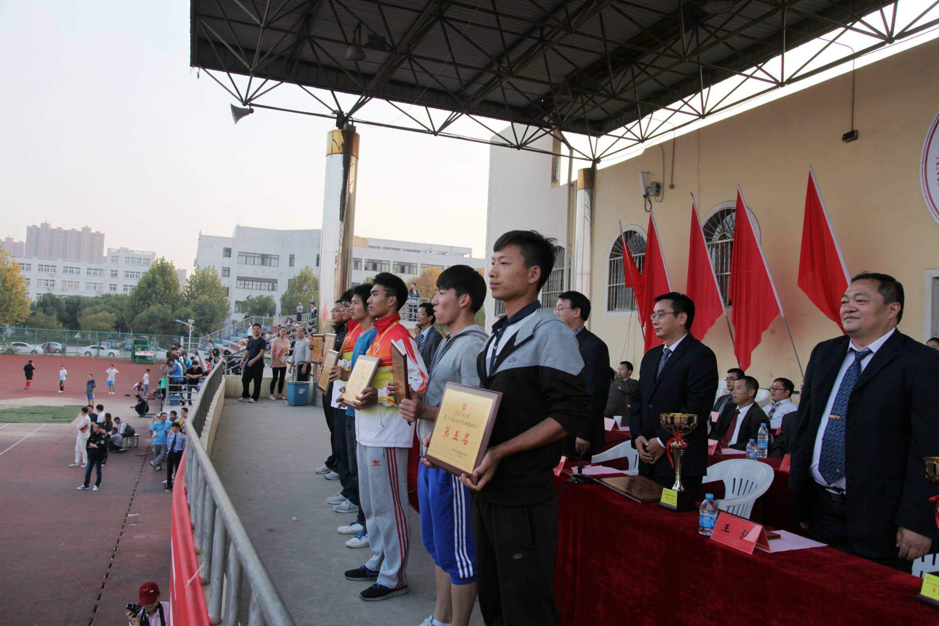 运动会组委会委员,全体运动员、裁判员、志愿者以及师生代表参加了闭幕式。
