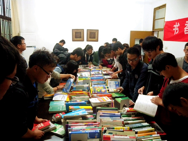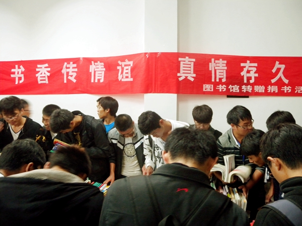 2014年10月29日下午,由校图书馆主办、校学生读者工作委员会承办的以“书香传情谊,真情存久远”为主题的图书转赠活动在西图书馆举行。所有转赠图书均由毕业生捐赠,共一千余册,新生同学可凭事先领取的赠书券选取所需图书,一张券可领取两本书。