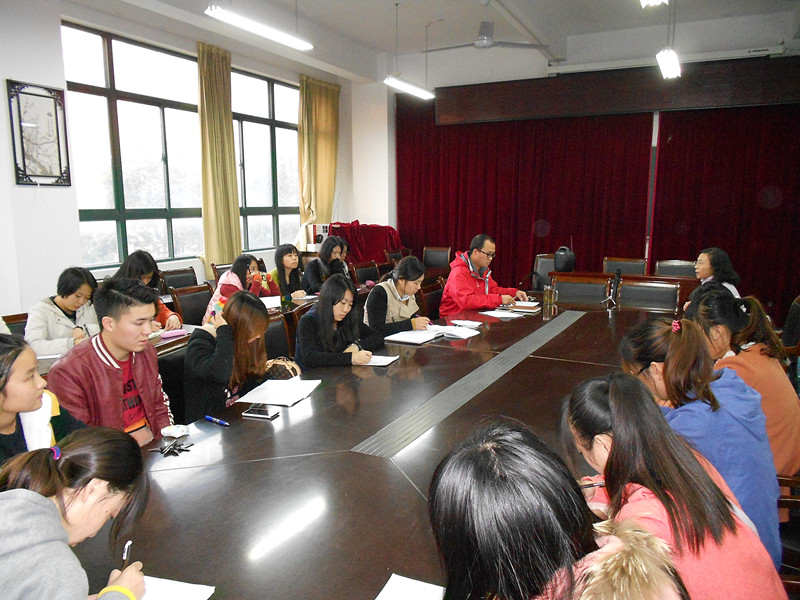 11月14日下午,外国语学院召开学生党员学习宣传贯彻党的十八届四中全会精神动员会。院党委副书记谈丽华出席会议,外国语学院全体学生党员参加会议。会议由学生党支部书记李飞主持。