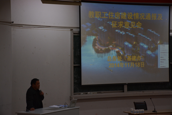 接着,总务处处长张国友就教职工住房建设情况作了通报。他介绍了教职工住房建设的基本情况、目前工作进展、下一步工作计划以及学校千方百计积极为教职工寻求降低建房成本的做法等向与会人员作了详细的介绍。