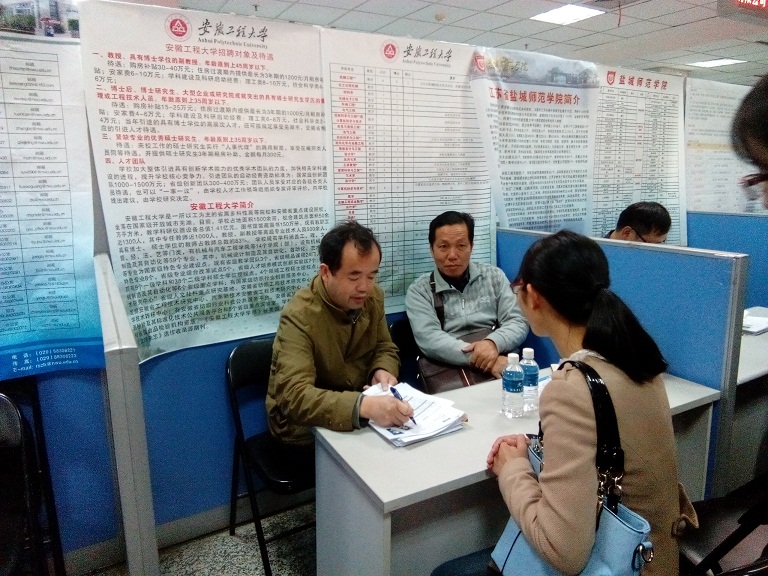 外出前,陈其工就此次人才引进要求、招聘方案等方面工作进行了具体指导。在苏期间,陈其工专程参加了南京理工大学和南京航空航天大学专场招聘会,并就职业发展、学术团队融入等问题与博士们进行了亲切的交流。陈其工代表学校热诚欢迎博士们的加入。人事处与相关学院还参加了江苏省人才市场举办的2015年度南京高校硕博专场招聘会,并分别在南京大学、南京师范大学、东南大学和江南大学召开了专场校园招聘会。通过校园专场招聘会,博士们对我校有了更深的了解,其中一些博士现场投递了应聘材料,并达成了初步签约意向。