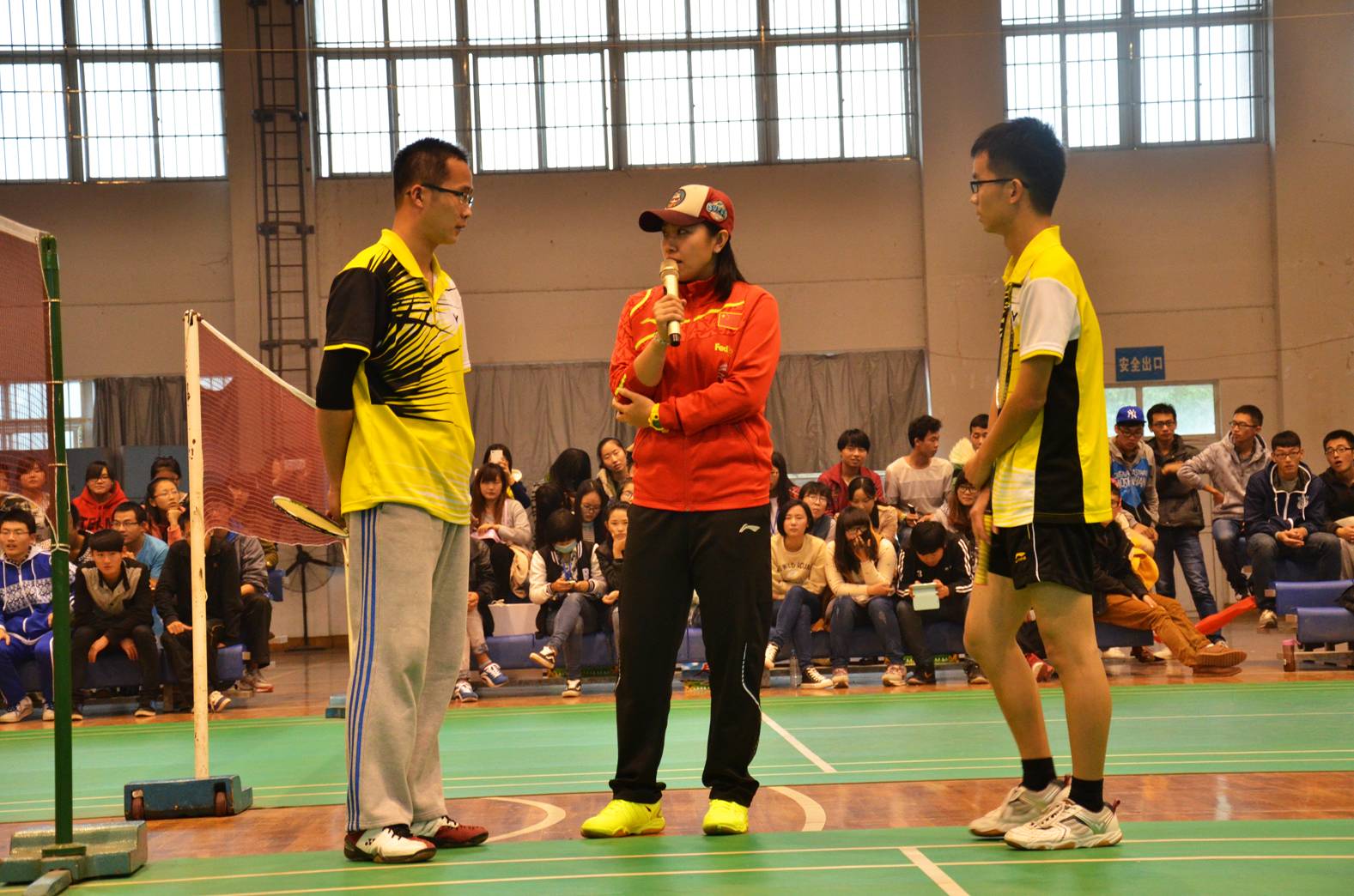 只是讲解显然不能满足在场师生的愿望,所以学校特意安排了现场指导环节。杜婧对几位学生进行现场指导,她表示,无论做什么事最主要的是要有思想,要学会思考,尤其是处在我们大学生的年龄阶段,要学着用大脑去打球,而不是凭着本能去打球。在经过杜婧一番精心指导后,两位选手又展开了一轮对练,虽然时间很短,但是两位选手的表现明显比之前好上很多,现场观众也毫不吝啬自己的掌声;之后的教师双打练习中,杜婧也给出了中肯的意见,她表示双打的话必须要有配合,合理的利用有限的场地才能让两个人的能力都得到最好的展现。