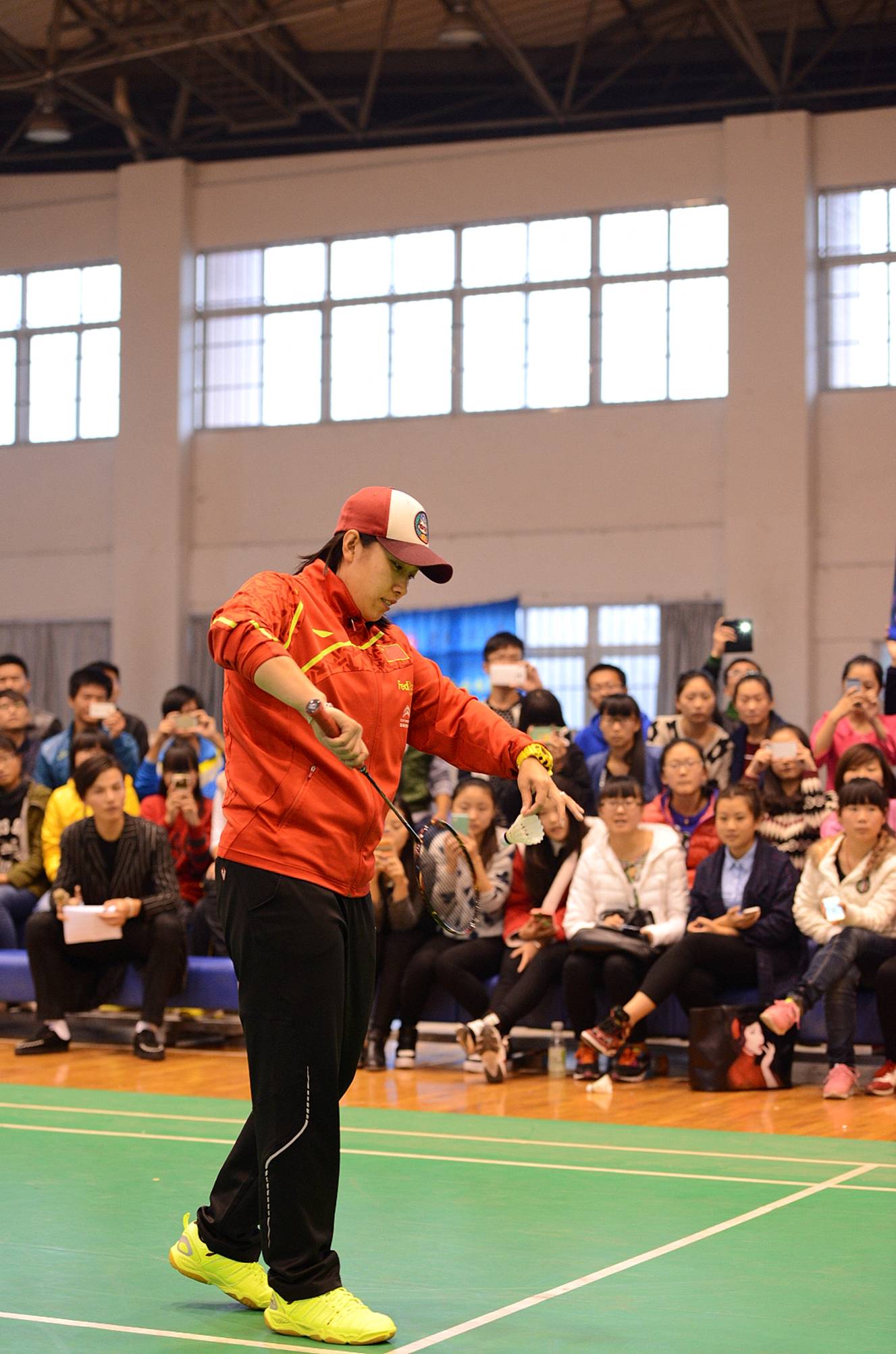 在这个环节,杜婧给在场的所有人展示了一些羽毛球的惯用技巧,反手抽球、直线扣杀、贴网球……看着杜婧潇洒的挥拍,台下的观众也不禁跟着一起挥起了手,想象着自己手握球拍的样子。每一次气定神闲的回击都让观众们的心为之一跳,羡慕之情愈发浓烈。