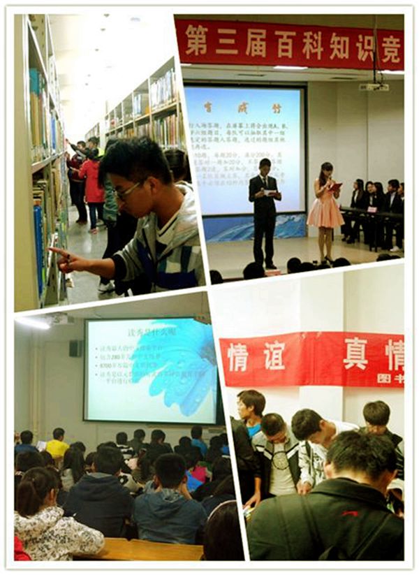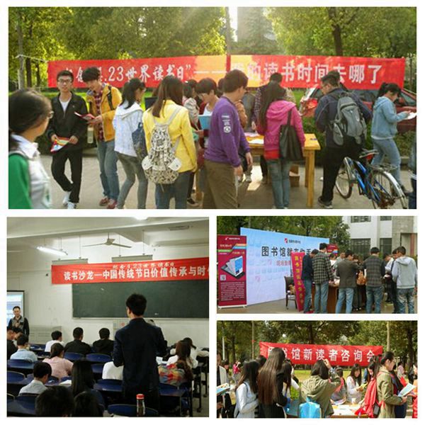 “我的读书时间都去哪儿了”读书倡议活动以当下的热点话题“时间都去哪儿了”为切入点,号召青年学子珍惜青春年华,充分利用大学时光,多读书,读好书,养成终生阅读的习惯,引起了他们的广泛共鸣;“移动图书馆——图书馆就在你手中”活动在适应新的阅读趋势,提升广大读者在信息时代背景下的信息素养等方面起到了积极作用;读书沙龙——“中国传统节日价值传承与时代思考”和“超星杯”传统文化展示大赛——“节日都去哪儿了”给青年学子带来了丰富的传统文化知识,使他们感受到了中华优秀传统文化的不朽魅力;“新生读者利用图书馆知识与技能竞赛”本着以赛促教、以赛促学、以赛促能的目的,在帮助2014级新生读者尽快地了解图书馆,熟悉图书馆的服务内容,掌握各类资源的检索技巧方面起到了促进作用。