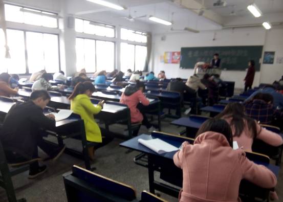 下午2:00,知识竞赛准时拉开帷幕。考生们都自觉提前到达考场,按照自己的学号依次有序的坐好。本次知识竞赛采取闭卷形式,内容涵盖《学生手册》的学籍管理规定、学位授予条件、国家奖助学金评比、党员发展、先进个人评选、违纪处理办法等多方面内容。考试期间,考场秩序良好,展现了我院学生严于律己的优良考风。