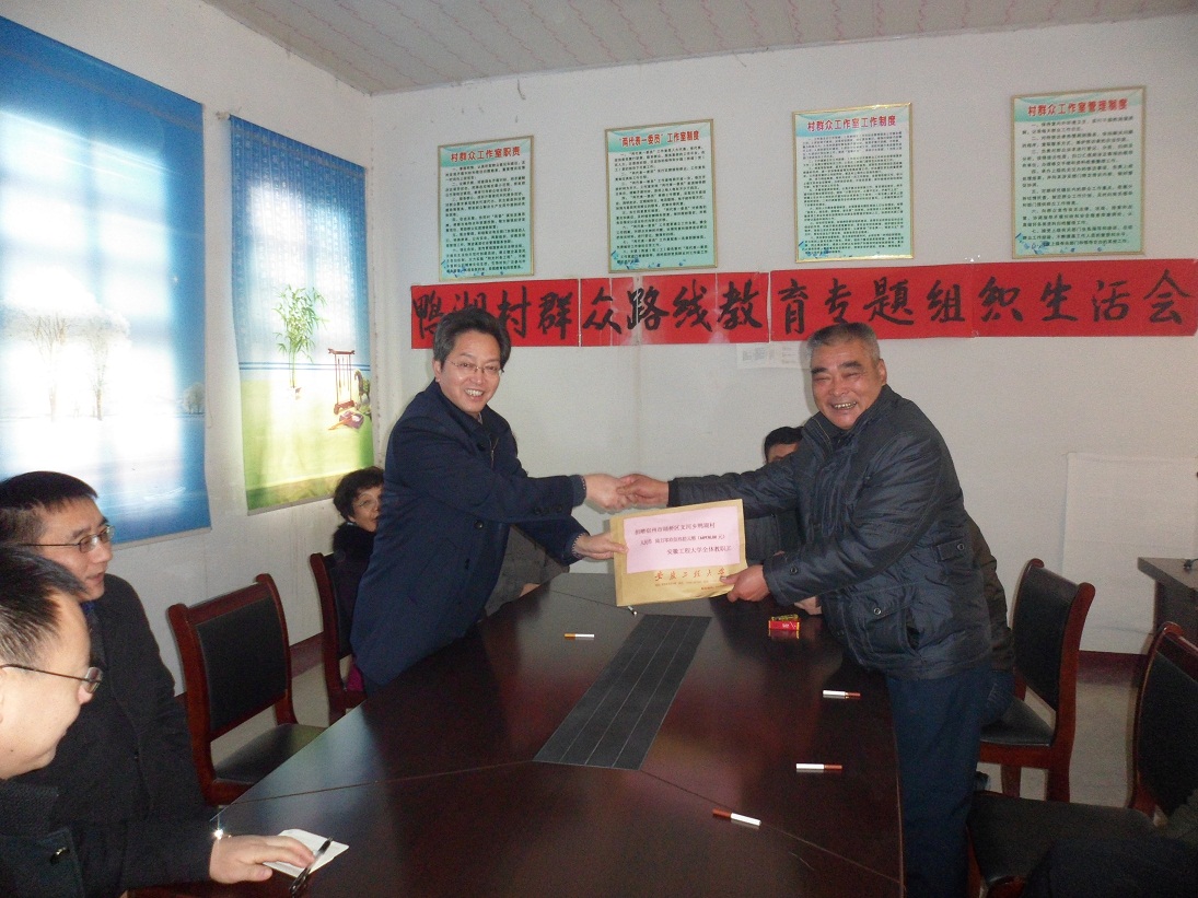 3日上午,在宿州市埇桥区扶贫办及支河乡领导的陪同下,副校长郭兴众,组织部长郑健亲自将我校选派的驻村干部丁雨晴送到鸭湖村挂职担任第一书记。在鸭湖村,郑健表示,根据省委组织部的安排,我校选派丁雨晴同志到鸭湖村驻村挂职。郭兴众与乡、村领导作了交流,对鸭湖村村情作了初步了解后,代表学校表达了我校愿意为鸭湖村的经济发展、社会进步尽一份力量;同时希望丁雨晴同志切实为鸭湖村的发展尽心谋划,努力工作,做到进得来,沉得下,见成效。鸭湖村、支河乡及埇桥区相关领导表示将尽力支持丁雨晴同志的工作,为丁雨晴同志创造良好的工作环境。