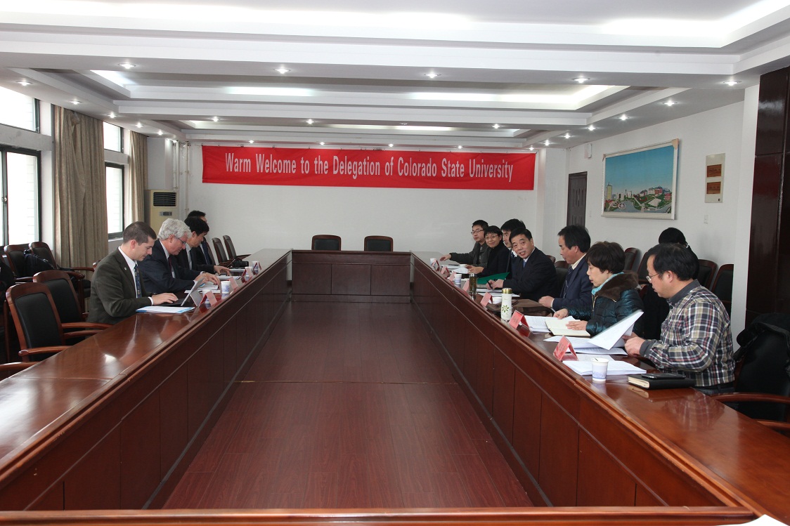 刘宁代表学校对詹姆斯·库尼一行的来访表示热烈欢迎,在简要介绍了我校校情和国际交流与合作情况后,他指出,科罗纳多州立大学工程类专业齐全,其中服装设计、建筑设计、土木工程、发酵工程等专业与我校学科设置十分相似,双方应在已签署的框架性合作协议基础上就相关专业合作办学、教师研修、科研合作与交流等方面取得实质性进展,并做好前期沟通。他希望通过引进国外先进教学理念及优质教育资源,在项目合作过程中发挥优势,为教师和学生提供国际性平台,培养具有国际化视野的高级人才。