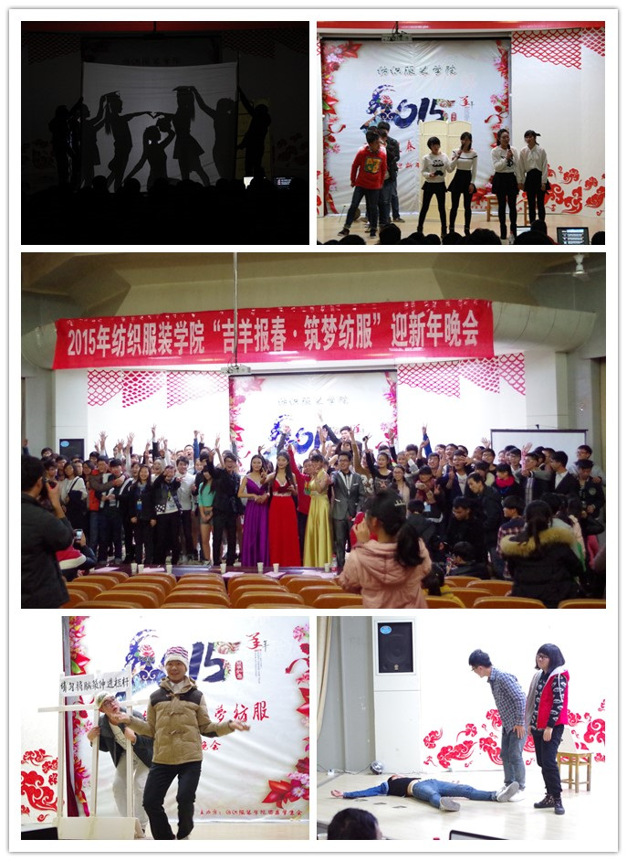 12月12日晚,纺织服装学院在学术报告厅举行了2015年“吉羊报春•筑梦纺服”迎新年晚会。院党委副书记孙宏义,院团委书记、新生辅导员和学院部分学生一起观看了演出。
