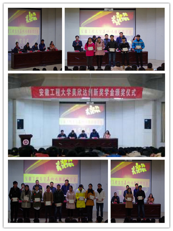 颁奖大会上,校学生处副处长胡家增首先宣读了学校《关于2014年美欣达创新奖学金评比结果的通报》文件,出席会议的企业嘉宾和教师为获奖同学颁发了奖学金证书。