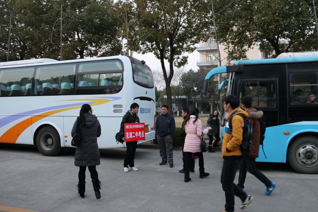 2014年12月27日、28日是倍受关注的硕士研究生入学考试的日子。为保证我校考研学子及时到达考研点,在校领导的指示和要求下,学生处、保卫处、研究生部提前部署,积极协调,联系了18辆客车接送697名学生前往市区田家炳实验中学、安师大附属外国语学校、芜湖一中、芜湖二中、芜湖职教中心、安师大(花津校区)等六个考点参加考试。