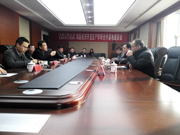 随后,双方就开展进一步的战略合作召开了座谈会。程乃跃强调,校企合作是一种创新型人才培养模式,有利于企业的长足发展,同时也有利于学校培养更适应行业和社会需要的优秀大学生。他希望校、区双方要以产学研基地成立为契机,在今后的合作中不断加深了解,深化合作。一是要“以点带面”,以开发区作为重要平台先行先试,积累产学研合作经验,逐步面向全县推广;二是要“全面展开”,让干部狠抓首位产业意识上档次,让企业管理、技术提升上水平,形成狠抓工业经济、强力打造首位产业集聚的浓厚氛围;三是要“重点突出”,注重实效,针对泗县机电首位产业发展,增强产学研对接、人才培训、技术攻关合作的可操作性;四是要进一步“强化组织”,做好宏观和微观调控,加强开发区与RayBetApp官网下载 的沟通协调,真正使产学研基地取得实效。