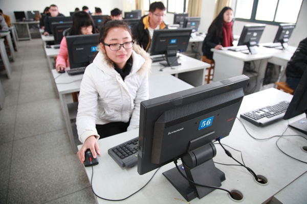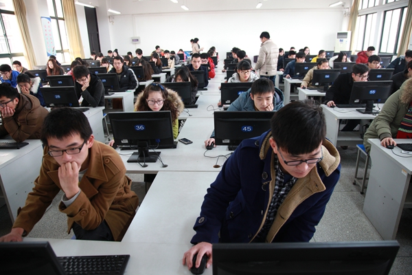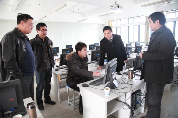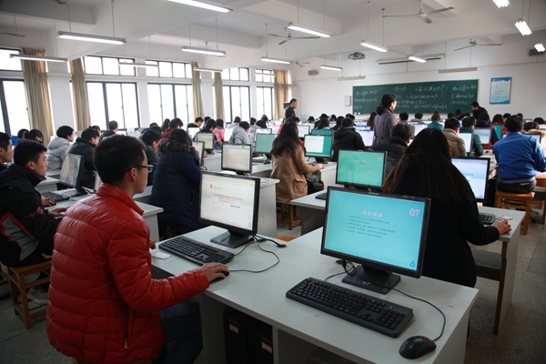 2015年元旦前夕,我校思政理论课首次网络考试如火如荼进行,历经12月29日、30日、31日三天,顺利完成了本学期覆盖面广、组织难度大的6221人的网络上机考试。网考期间,副校长叶常林带领教务处处长陶庭先、现代教育技术中心主任余雷前往现场查看,对思政网络考试的初次运行给予了高度关注。思政部党总支书记李卫华在考试的三天时间里一直在考场指导巡视。思政部全体30名教师和现教中心基础训练部5名教师承担了全部三天的考务、监考任务。
