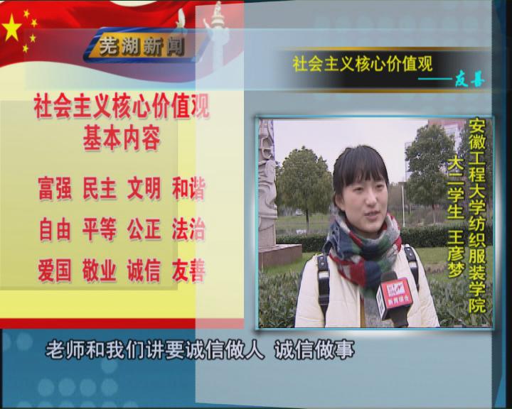 出台了《培育和践行社会主义核心价值观的实施意见》,组织开展了师生“学雷锋十佳先进事迹”、“践行核心价值观、争做最美校园人”评选活动,社会主义核心价值观宣传画比赛及墙绘活动;获批2个省级“弘扬核心价值观”名师工作室,获批安徽省第一届教育系统文明单位立项建设学校,荣膺“第十届安徽省文明单位”称号。