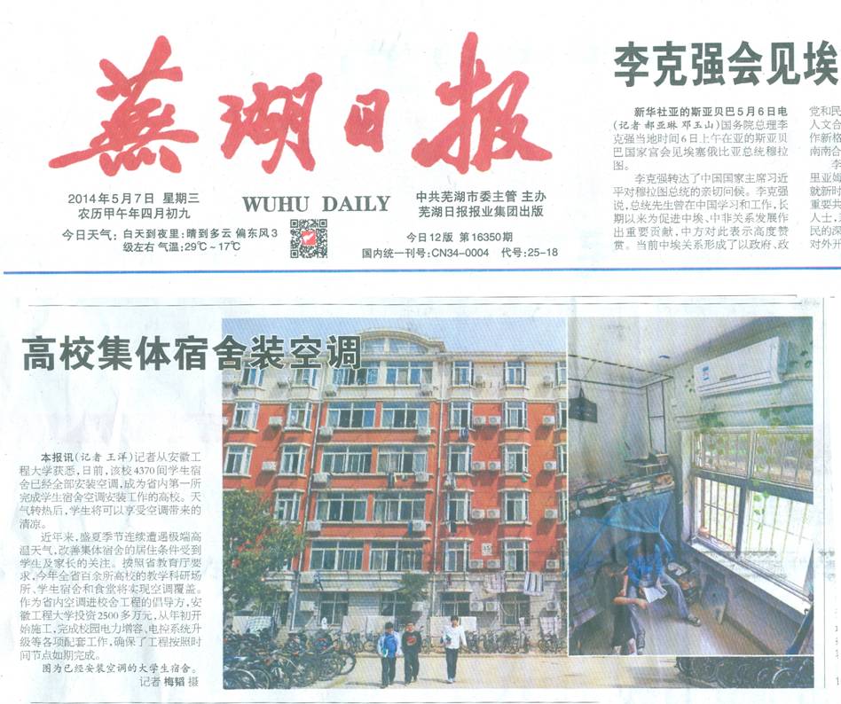 民生民心工程取得重要进展,教育发展基金会助推学校事业发展。作为省内空调进校舍工程的倡导方,我校于2014年5月1日前在省内率先完成4370间学生宿舍空调安装任务。此外,改善了校园环境,建设了教工餐厅,完成了教职工医保工作,教职工定向商品房建设积极推进。