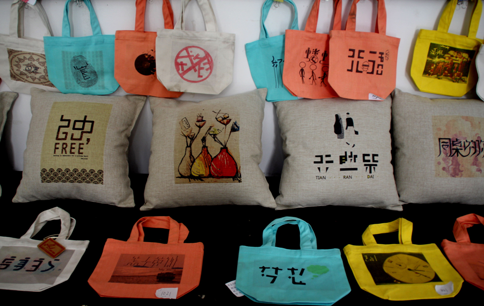 为了加强应用型人才的培养,提高教学质量,老师在课程教学的表现形式上进行了创新,探索由传统的课堂平面创造转向社会实践创作,利用艺术学院包装与印刷工艺实验室先进的热转印设备,指导学生将作业印刷到学生喜欢的抱枕、布包、T恤等实物上,从而使作品具有装饰和实用的双重功用。