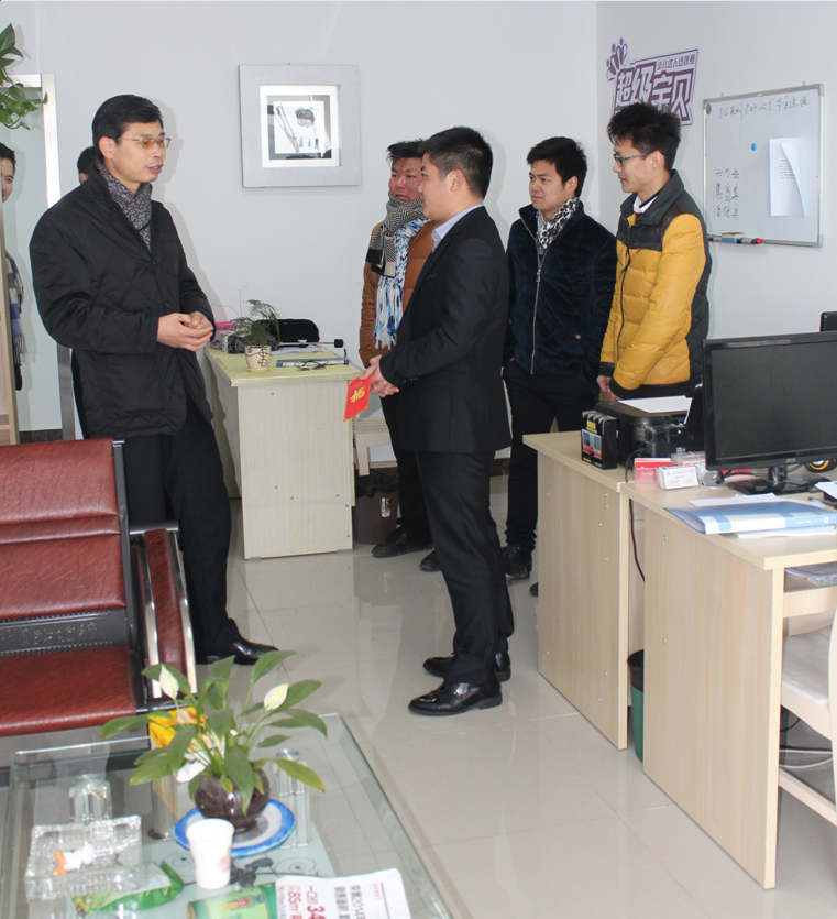 刘金斌一行逐个走访了创业团队,详细询问了解创业学生的创业成果以及创业中存在的困难,勉励他们再接再厉。学生们介绍了自己团队的创业项目,对学院领导的关怀表示感谢。芜湖蓝蜜蜂文化传媒有限公司总经理王新东介绍说,创业以来,团队同学不断努力,寻求合作,提升自身价值品牌。目前公司已经与江苏广电集团综艺频道《超级宝贝》栏目组签署了战略合作协议,并将于3月16日在海螺大酒店举行新闻发布会。天朗装饰设计有限公司郭传飞同学介绍了1月30日接受芜湖新闻综合频道专访的有关情况。典形工业设计有限公司总经理强雄浩介绍了与芜湖市新丝路绸文化创意有限公司签订战略合作协议的有关情况。