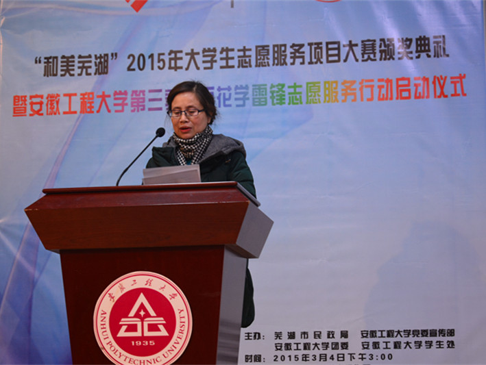 3月4日下午,“和美芜湖”2015年大学生志愿服务项目大赛颁奖典礼暨RayBetApp官网下载 第三季“团百花”学雷锋志愿服务行动启动仪式在学术报告厅举行。校党委书记陈其工、校党委副书记苏国红,芜湖市民政局副局长魏安阳,校党委宣传部、学生处、团委负责人出席仪式。仪式由校团委书记刘一主持。