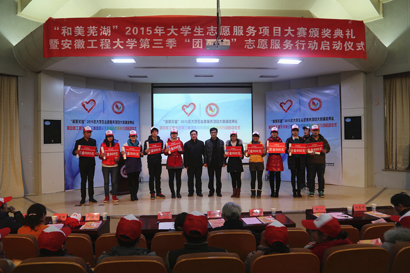 本季学雷锋志愿服务行动创新了项目征集形式,先期由校团委与芜湖市民政局共同举办“和美芜湖”2015年大学生志愿服务项目大赛,共吸引566个项目团队报名参赛,经评审142个项目获奖,其中100个金、银、铜项目入选校第三季“团百花”学雷锋志愿服务行动,参与志愿者达2800余人。大赛以“青春志愿行 和美芜湖梦”为主题,旨在进一步提升大学生参与志愿服务积极性,辅导和培育有潜力、能推广的志愿服务项目。入选项目获得学校经费支持,用于开展志愿服务行动。