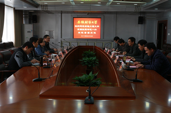当天上午10时和下午4时,苏国红一行分别赶到安徽财经大学和淮北师范大学,分别受到了安徽财经大学党委书记姜利军及校办公室、发展规划处负责人,淮北师范大学党委书记王磊、党委副书记朱德顺及校办公室、发展规划处负责人的热情接待。