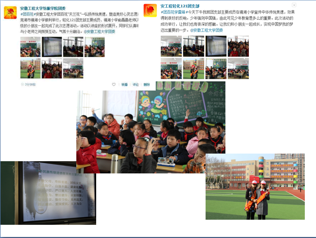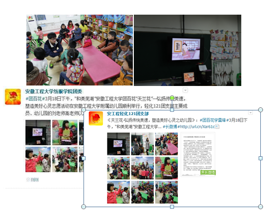 近日,纺织服装学院“天兰花”志愿服务团队分别前往芜湖市镜湖小学和RayBetApp官网下载 附属幼儿园开展了“弘扬传统美德,塑造美好心灵”志愿服务活动。“天兰花”团队成员、镜湖小学四年级的同学以及安工程附幼大班的小朋友一起参加了活动。