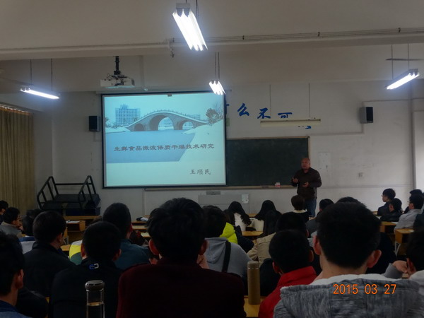 王顺民博士报告的主题为《生鲜食品微波保质干燥技术研究》。报告阐述了生鲜食品高效节能保质干燥技术的研究背景、定义和特点,着重对该技术中关于微波辅助真空干燥(油炸)高效节能保质脱水研究、微波辅助冻干和热风干燥高效节能保质干燥研究、改进微波高效干燥均匀性的微波干燥研究和高效干燥条件下的功能性成分保存研究等四个代表性领域进行了介绍。王顺民还对自己所从事的改进微波高效干燥均匀性及高品质果蔬干燥的研究做了深入具体的讲解。