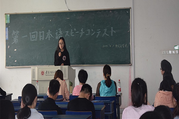 为加深对日本文化的了解,营造学习日语的良好氛围,为广大日语爱好者提供展现自我风采的平台,4月1日下午,由外国语学院主办的首届日语演讲比赛决赛在6教正式拉开帷幕。日语系全体教师和外教马场美穗子担任评委,院党委副书记谈丽华、日语系主任郑仲春、院团委副书记和日语系100余名学生观看了比赛。