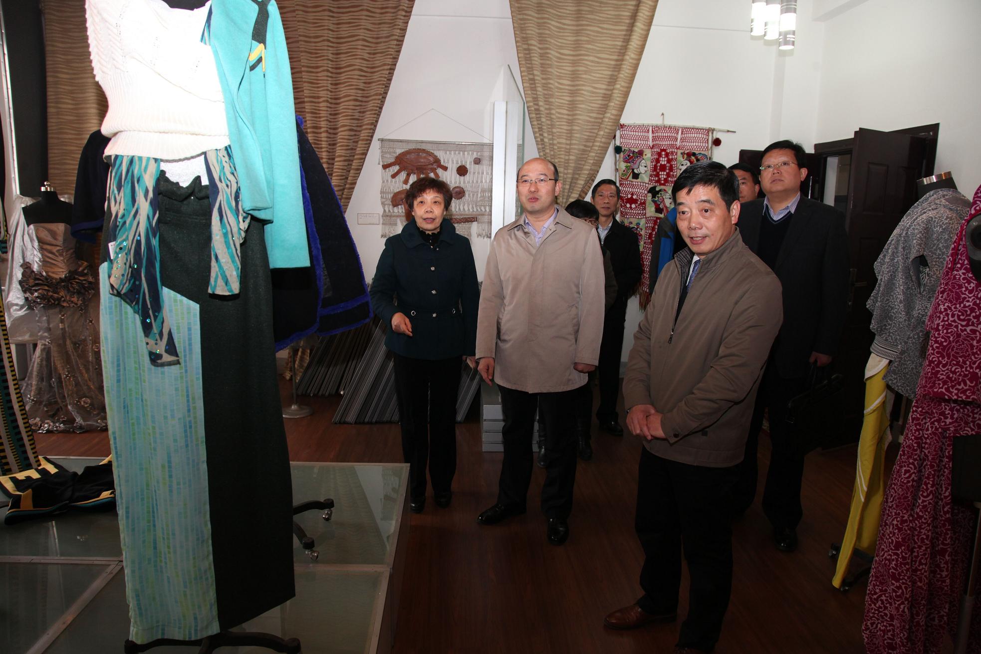 办公室、科技处、纺织服装学院、艺术学院负责同志参加了座谈会。座谈会前,汪华东一行在校领导陪同下,考察了艺术学院、纺织服装学院的作品陈列厅、实验室和教师工作室。