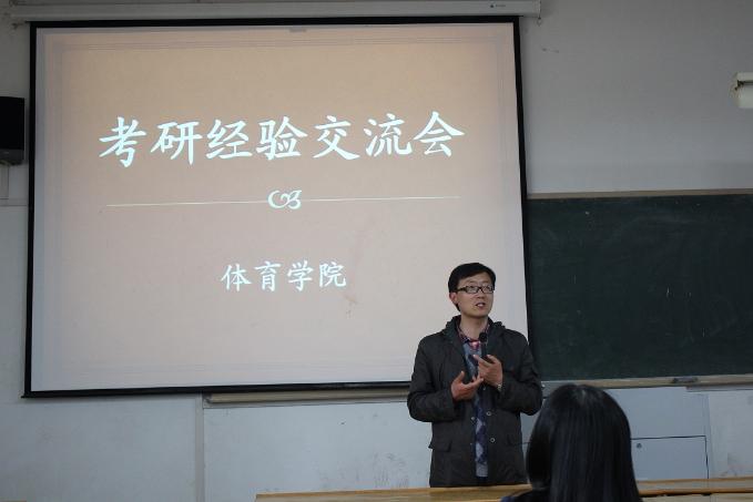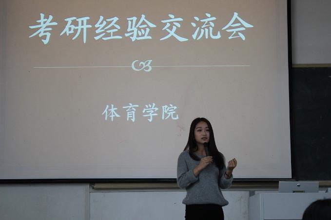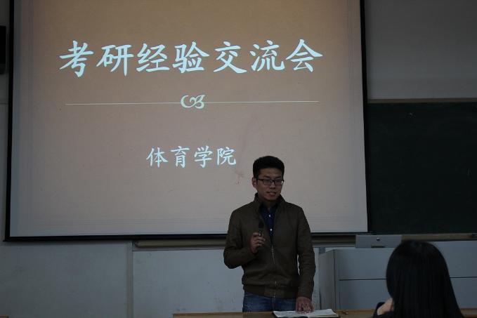 4月15日下午,体育学院“考研经验交流会”在4教209教室准时开始。四位体育学院的学姐以及来自机械学院的张大将同学向同学们介绍了自己复习备考的经验体会,体育学院除毕业班以外的全体学生聆听了此次报告,交流会由王彦青老师主持。