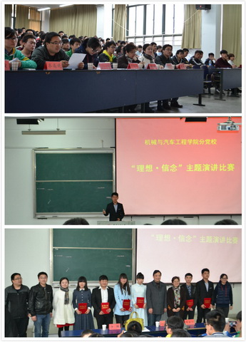 4月15日下午,机械与汽车工程学院分党校在5教217教室举办了“理想•信念”主题演讲比赛。担任此次大赛的评委有院党委书记、分党校校长邓英扣,党委副书记、党校副校长周怡以及部分辅导员。