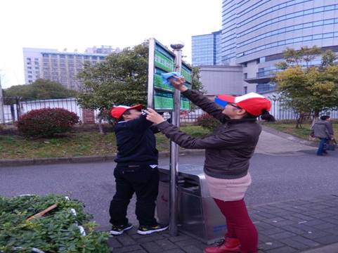 3月18日,思政部研究生带上清洁剂、水刷、抹布等工具,主动擦洗公交站牌、交通护栏及清扫站台上的垃圾,并对问路的行人耐心解答咨询。经过研究生们一个多小时的劳动,公交站台焕然一新,他们以实际行动践行雷锋精神,激发更多社会正能量,号召大家积极参与社会志愿服务。