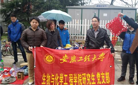 3月18日,生化学院研究生联合生化学院志愿者团在学生宿舍区开展“学雷锋见行动”校园爱心义卖活动,青春与志愿同行,义卖活动现场人气爆棚,并且将义卖活动所得全部捐给清水小学的学生,虽然义款不多,情意却深,体现着同学们奉献社会的美德。