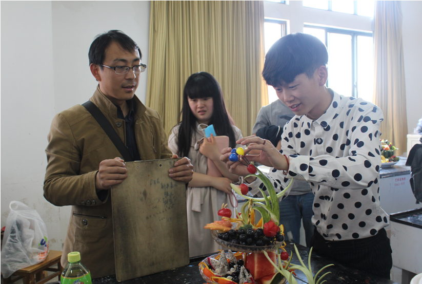 4月23日中午,艺术学院在七教501教室举行第四届蔬果拼盘大赛,近百名选手参加了比赛。院团委副书记迟传德、辅导员张焱、鲍洁、梁敏担任本次大赛评委。