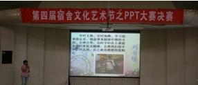 2015年5月9日下午,由校团委、后勤集团主办,校学生宿舍管理委员会承办的第四届宿舍文化艺术节之PPT大赛决赛在学术报告厅圆满结束。本次比赛历时一个多月,经过各学院的选拔和文化节的一系列比赛,最终有13个优秀寝室进入决赛。