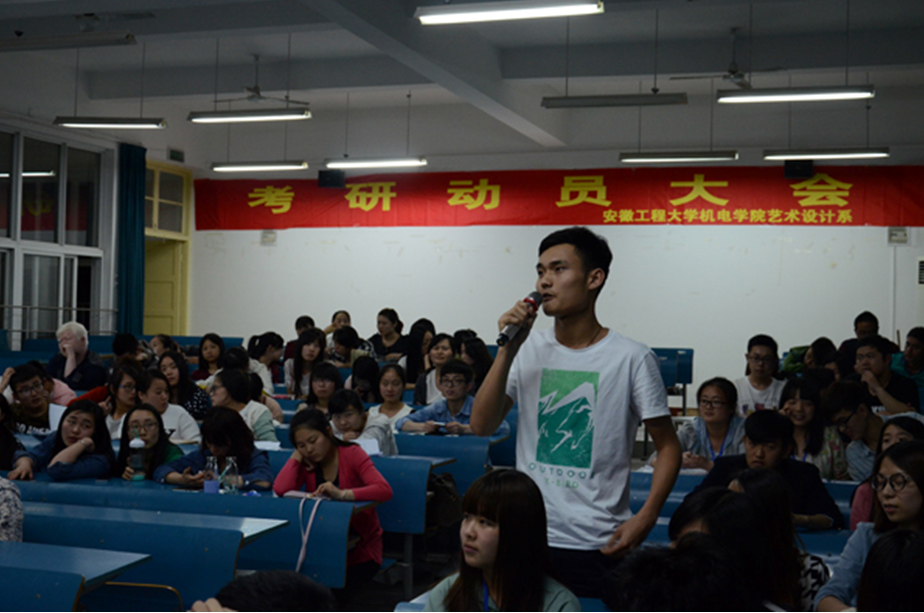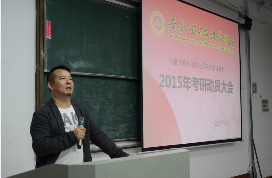 为加强研究生考研宣传动员,调动学生考研的积极性,5月12日晚,艺术学院在机电学院文津校区西二501教室召开2016年考研动员大会,机电学院艺术设计系2012级全体学生参加了动员大会。参加动员会的有艺术学院副院长承杰教授,艺术学院硕士生导师王淮梁、史启新、何建波、孟梅林,以及校外硕导芜湖市书画院知名画家吴晓明等。动员会由机电学院艺术设计系主任(兼)王淮梁教授主持。