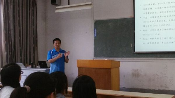 5月13日下午,计算机与信息学院优秀青年教师章平博士在2教205教室做了题为“小器件,大应用 ——走入物联网”的学术讲座。物联网2013级全体同学和部分其他专业学生和教师聆听了讲座。