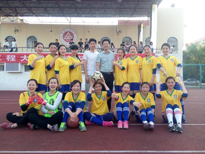 为了进一步推动我校校园体育活动的开展,提高女同学参加运动的积极性,由校团委和体育学院共同策划组织的2015年“校杯”女子八人制足球赛于5月20日下午在校足球场正式打响。