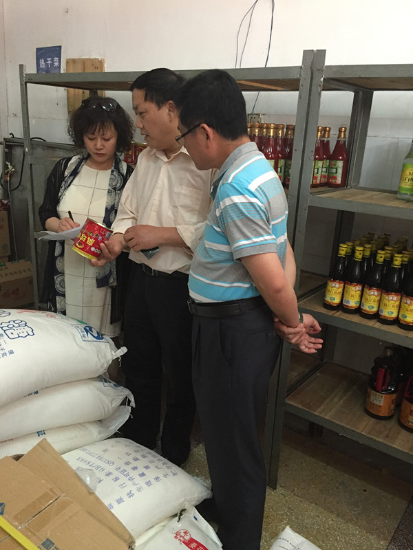 检查人员重点对各食堂主副食品仓库、大宗物品、副食材供货渠道、食材原料质量、进货台帐及原料供货单位的索证、索票情况进行了认真检查,细致查看了冷库贮存状况、食品留样、食品存放、原料保存是否规范等情况。从食材的新鲜程度到饭菜的烹制过程,从工作人员的个人卫生到操作过程的卫生状况,检查人员耐心详细地记录,并就相关细节问题向食堂经营的负责人进行询问。检查人员还对副食仓库食材保质期存在的新鲜度疑惑现场进行了清理,确保不留隐患,最后针对如何规范学校食堂安全卫生管理提出了建议和意见。