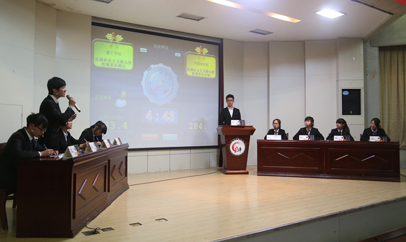 本届辩论赛由校团委和思政教学部共同举办,校学生会承办。思政教学部围绕思政理论的热点难点问题进行辩题设计,派出12名思政理论课教师担任各学院辩论队的指导教师,并以评委的身份参与到前期18场小组赛的评审指导。参赛同学在指导教师的精心指导下,深入分析辩题,反复学习研究中央提出的有关重要理论观点,多方查找文献资料,寻找论辩依据,在此基础上,撰写了精彩的辩论稿。许多辩论内容,情理交融,辩驳犀利,旁征博引,给评委和观众留下了深刻印象。