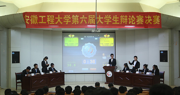 5月21日晚,辩论赛决赛在学术报告厅举办。校党委副书记苏国红出席并观看了比赛,党委组织部、校团委和思政部负责人担任比赛评委。决赛共分为两场,首场比赛由机械学院和艺术学院辩论队就“实现‘中国梦’关键靠经济硬实力还是文化软实力”辩题展开激烈交锋,双方队员结合社会现状中的具体案例,由浅入深地表达出实现中华民族伟大复兴的“中国梦”,不仅是民生的需要,更是国家长远发展的必然选择。在冠军争夺赛中,建工学院和外国语学院参赛队员紧紧围绕“弘扬社会主义核心价值观重在践行还是重在认知”的辩题,以社会主义核心价值观的精神内涵为切入点进行了深入浅出的辩论,通过语言的交锋引导在校大学生深化对核心价值观的思想认同和情感认同,激发了大家自觉做核心价值观践行者、守护者和建设者的热情。整晚比赛中,参赛队员用语言歌颂青春,以辩论启迪智慧,在立论陈词、自由攻辩和攻辩小结等环节中展开了一番唇枪舌战。辩论中辩手们沉着镇定、冷静迎战,敏锐捕捉对方的漏洞进行辩护,为现场同学呈现了一场脑力与口才的视听盛宴,展现了我校学子宽阔的时政视野和活跃的思维能力,辩手们的精彩表现赢得了观众热烈掌声。最终,建工学院代表队获得冠军,外语国语学院和机械学院代表队分获亚军和季军,建工学院张鹏同学荣获最佳辩手称号。
