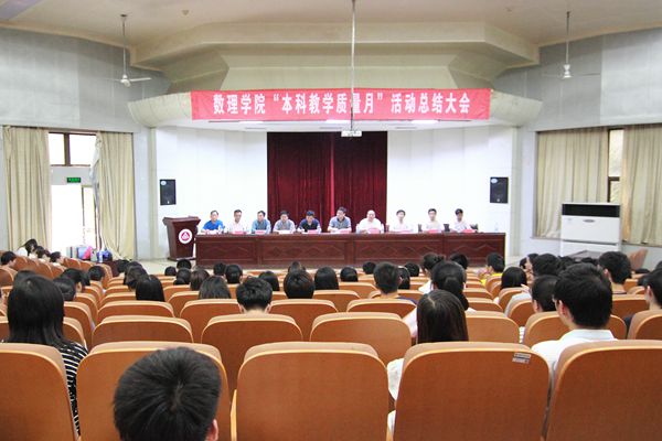 最后,叶常林在讲话中代表学校肯定了数理学院在“本科教学质量月”活动中所做的工作,并指出,教学质量始终是学校的生命线,是学校办学实力的体现。他说,随着学校全面进入一本招生,如何解决学校发展中的问题,如何提高学校的竞争力,提高教育教学质量是永恒的主题。同时,他就如何抓好本科教学质量提出三点指导性意见和建议:一是全体教师要强化教学质量意识,练好内功,适应时代发展和社会需求,注重学生的创新精神和创新能力培养;二是教师、管理人员和学生对于学风建设中存在的问题,要多观察、多思考、多想办法,用“钉钉子”精神,切实加强学风建设;三是教育和引导学生修身立德、刻苦努力,勉励同学们多读书、多学习,成为有理想、有抱负的有志青年,将来为社会多做贡献。