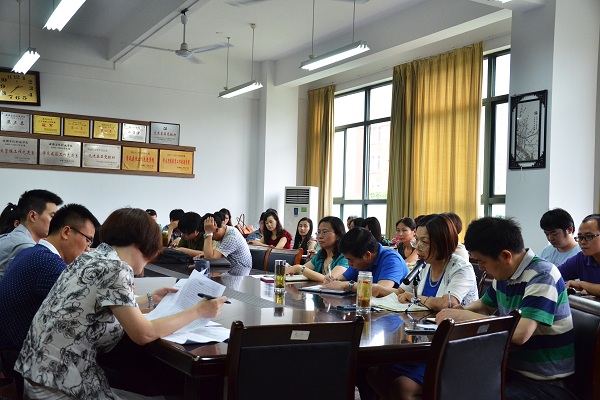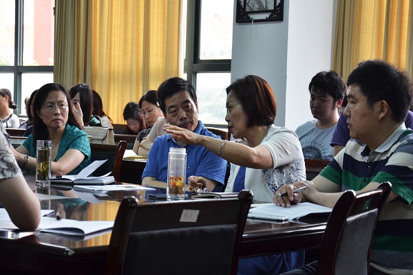 在会议的第二阶段,胡长新带领大家再次学习了“学校2015年本科教学工作暨教育思想观念大讨论动员会”的主要精神。院长刘进通报了学院根据学校“教育思想观念大讨论”的布置,结合本院工作实际所做的整体安排和执行情况。接着,三位教师代表围绕教育思想观念大讨论,从学生工作、大学英语教学改革、专业建设等不同侧面进行了深入的汇报交流。党委副书记谈丽华通报了学生工作围绕教育思想观念大讨论所开展的活动情况和学风建设方面所采取的新举措及取得的成果。大学英语第一教学部主任王莉就我院公外教师如何解放思想,更新观念,在推进大学英语教学改革中的具体做法、取得的成效以及存在问题和困惑进行了汇报交流;英语系主任李新国着重介绍了英语系在修订专业培养方案、人才培养标准和打造高水平教学团队方面所做的主要工作以及对未来专业建设深层次改革的思考。