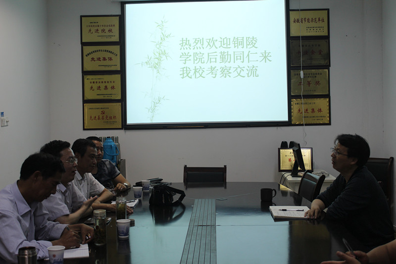 6月10日下午,铜陵学院总务处副处长王万全等一行5人来我校调研考察校园物业服务社会化改革工作,受到后勤服务集团总经理魏长顺、副总经理李敬华等的热情接待。