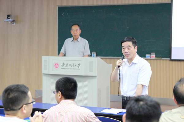 刘宁在致辞中说,严加安院士一直关心支持我校的建设和发展,曾先后三次莅临我校讲学指导,特别是对我校金融与数学学科建设给予了鼎力支持和无私帮助,他代表学校全体师生对严加安院士来校讲学表示热烈欢迎和衷心的感谢。随后,刘宁简要介绍了我校的办学历史、发展现状等,并向在座的师生详细介绍了严加安院士。他说,严院士是我国著名的数学家,概率学家,不仅在专业学术领域内具有高深的造诣和突出的成就,而且在书法、诗词等方面都很有建树。此次严加安院士莅临我校,将面向师生开展“5+1”高端讲座,即五场《金融数学理论与应用》的课程讲座和一场题为《想象力比知识重要,兼谈大学生如何成才》的公众演讲。严加安院士的到来,使我校师生能够零距离与大师对话,了解世界学科前沿,这是一次非常难得且宝贵的机会,对于我校师生开阔眼界、增长知识、做好学科发展以及科研工作具有重要意义,必将对我校高水平大学建设带来积极影响。