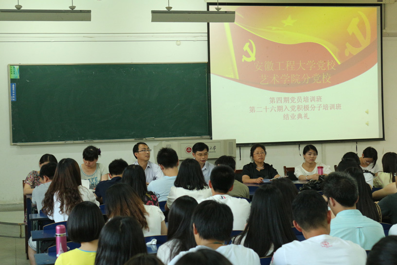 6月11日下午,艺术学院第四期党员培训班暨第二十六期入党积极分子培训班结业典礼在6教111教室举行。院党委书记刘金斌、党委副书记孟向红出席,团委副书记、党员培训班班主任、入党积极分子培训班班主任、学生支部书记以及全体学员出席了典礼。典礼由孟向红主持。